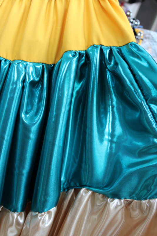 MULTICOLORED ruffled skirt SAFFRON YELLOW, TURQUOISE BLUE, GOLD and BLACK -fits sizes 40, 42, 44 and 46