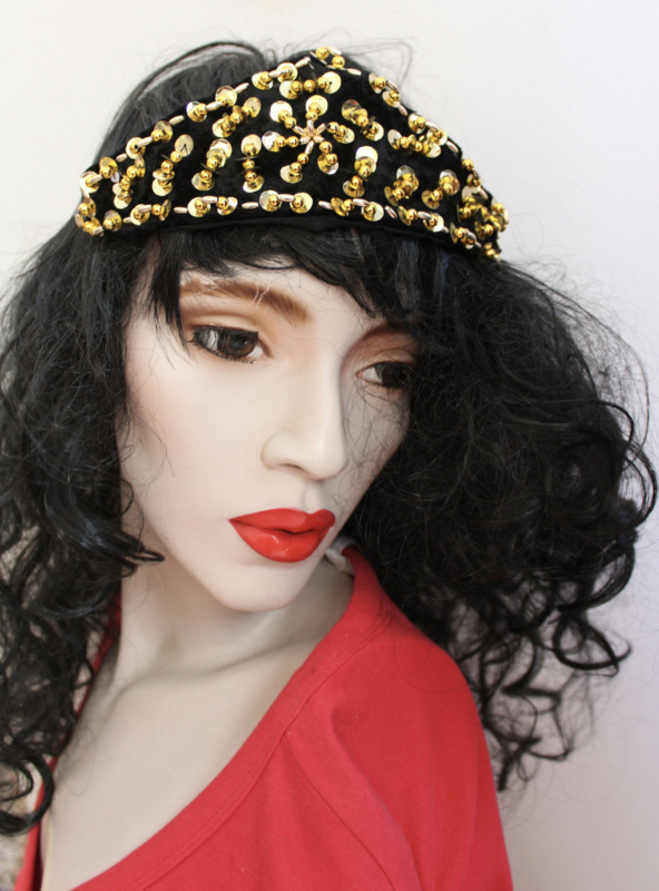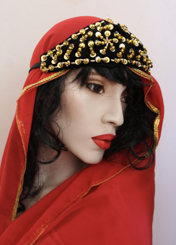 OverviewBeads and sequins decorated headband / hair band / necklace BLACK GOLD. Accessory for bellydancer, princess and queen. The veil on the picture is not included in this article.
